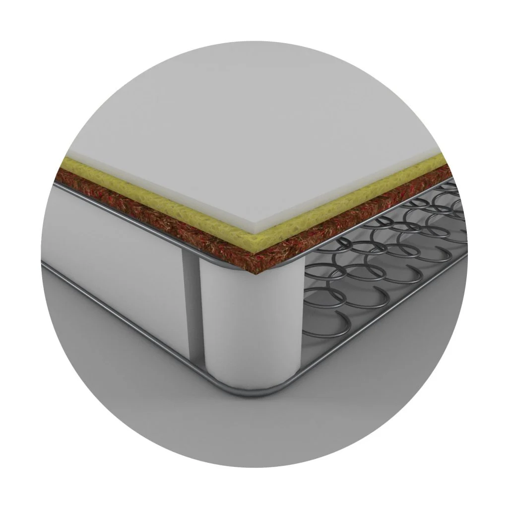تیم تولید اسکلت اصلی این تشک را از سیستم فنر متصل بونل با مفتول ضخیم ۲.۲ میلیمتری میسازد. این شبکه فنری قدرت تحمل وزن مناسبی دارد و از فرم کلی تشک در درازمدت محافظت میکند. علاوه بر این، این فنربندی ارتعاشات بدن را به خوبی در سطح تشک پخش میکند. بنابراین، شما در هنگام جابجایی روی تشک، تعادل خوبی را تجربه خواهید کرد. در نتیجه، تشک رویال چیچک مدل بونل ۳ دوام بسیار بالاتری نسبت به مدلهای مشابه و بینامونشان بازار دارد.